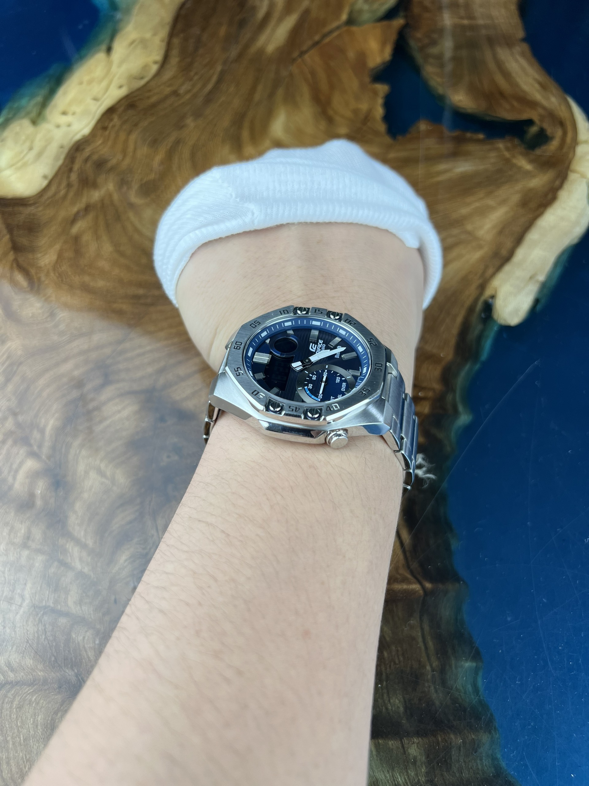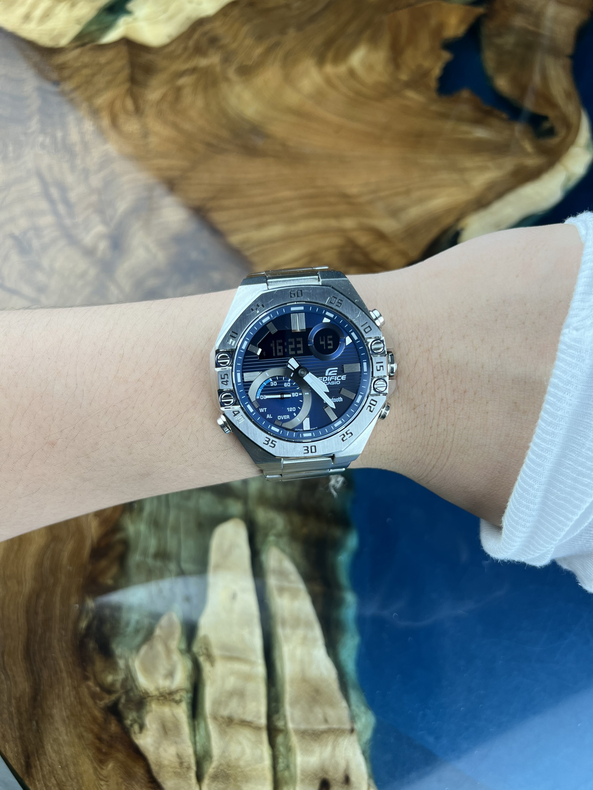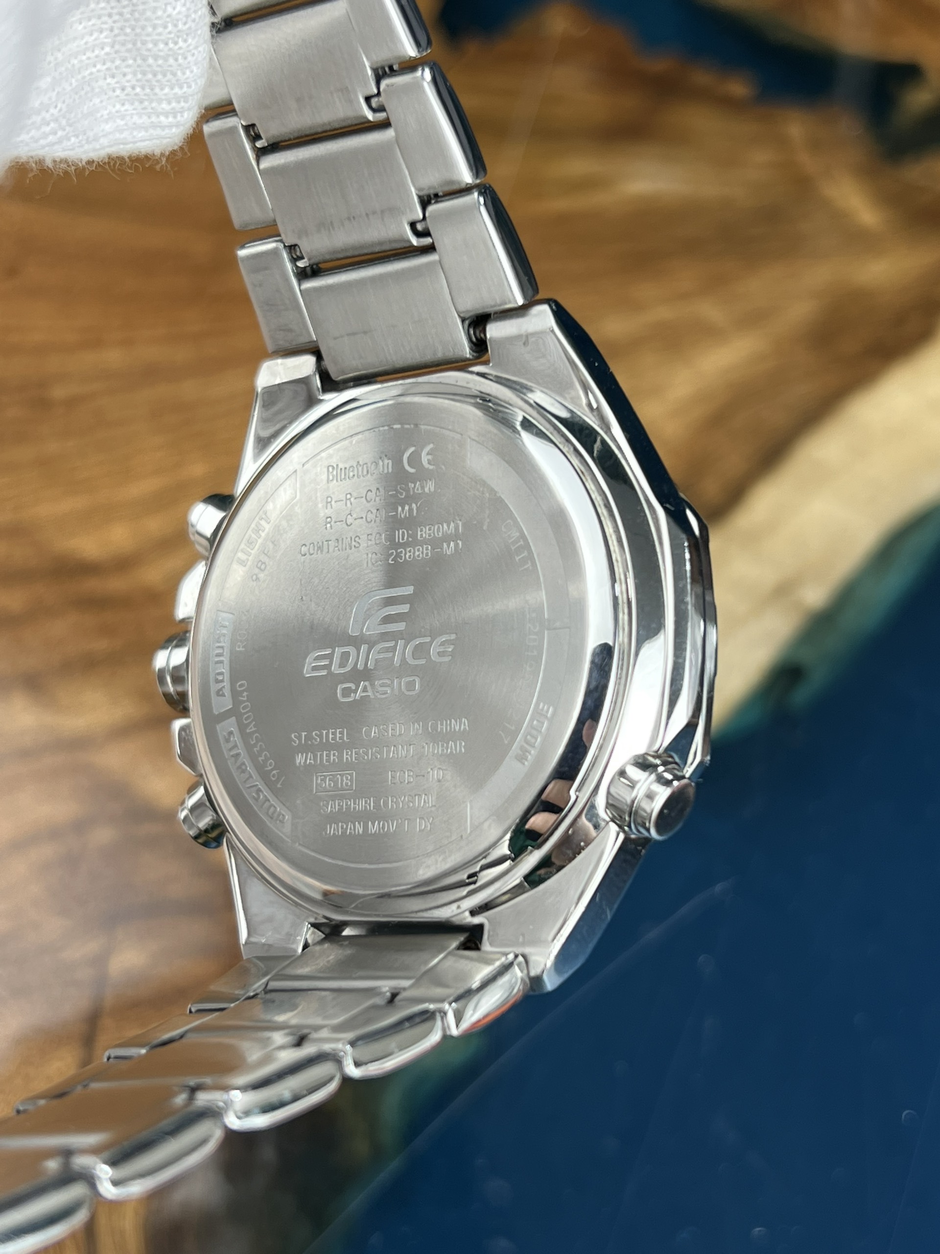 - Tại vị trí 3 giờ là logo “Casio Edifice”, góc 4h có dòng chữ “Bluetooth”